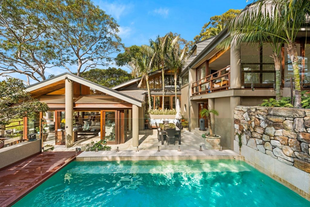 Rising up above Rosherville Reserve and Chinamans Beach with direct access to the foreshore, this magnificent Walter Barda designed home welcomes spectacular Middle Harbour vistas from all key rooms and is one of only a handful of prestige properties within a secret enclave.